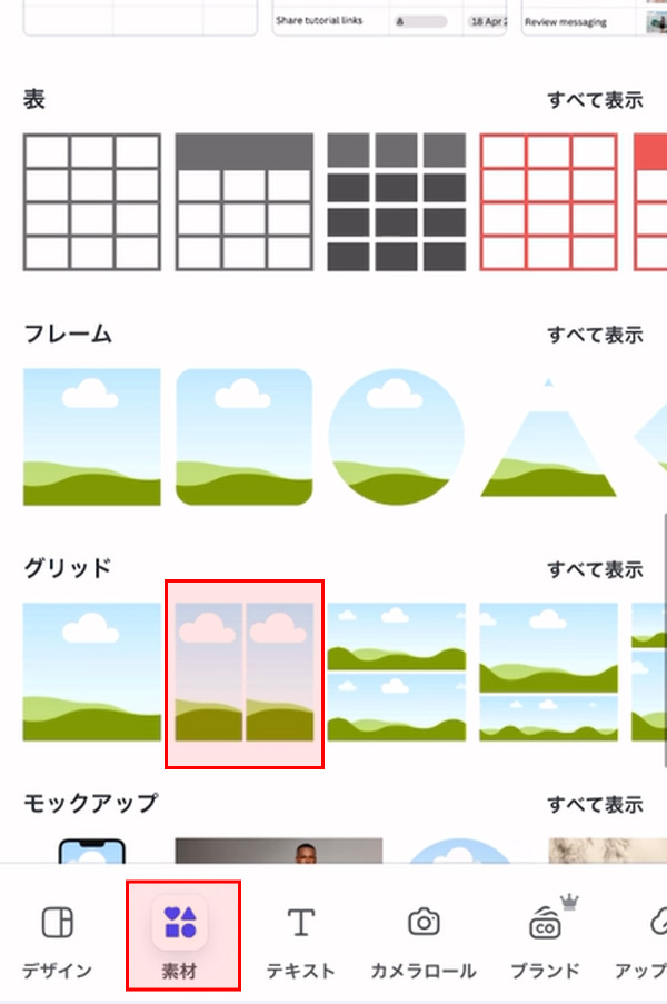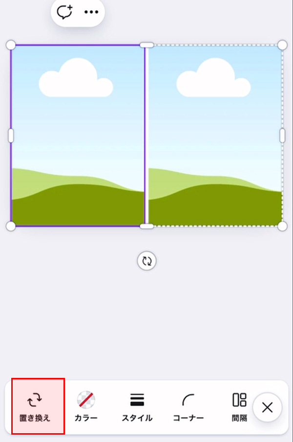 7. グリッドを選択、「置き換え」押下、スマートフォン内の画像を選択